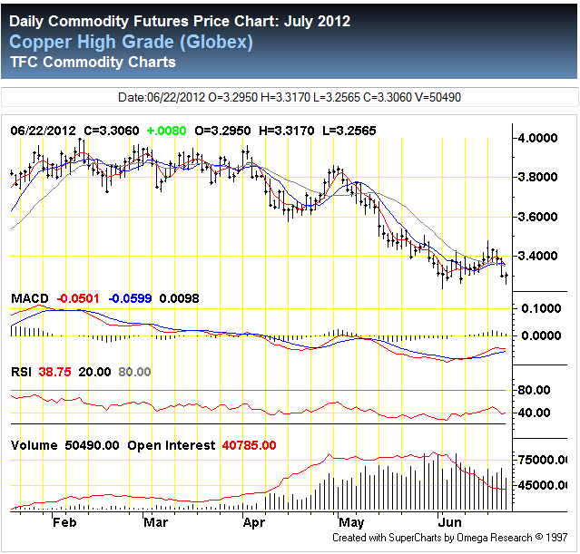 Nedanstående grafer jämför kursutvecklingen på guld och silver på NYMEX med kopparpriset på COMEX.