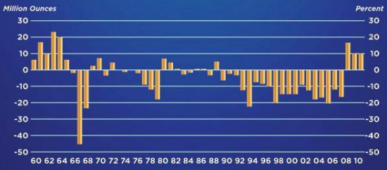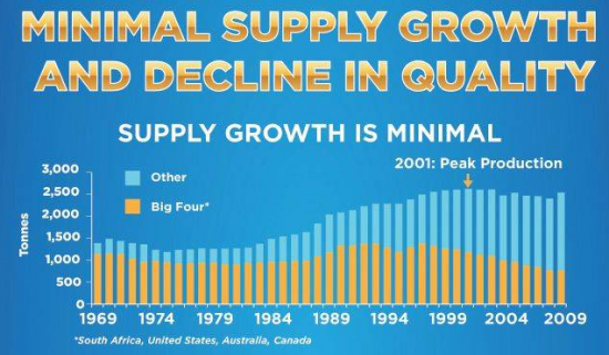 Mindre än 1% av världens tillgångar är idag allokerat i guld. Under den förra bullmarknaden i slutet av 70-talet, var 5% av världens tillgångar allokerat i guld. För att stiga 4% skulle detta kräva 170 ton guld, vilket motsvarar cirka 70 års guldproduktion.