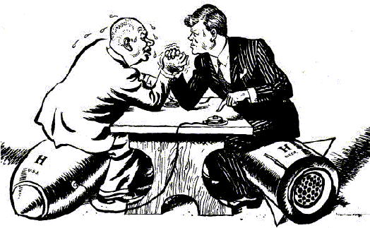 Nedan är en brittisk karikatyr från 1962 där det kalla kriget skildras som en armbrytning utan vinnare; likheterna med den nuvarande situationen på guldmarknaden är ganska träffande i och med att debatten mellan monetarister och guldförespråkare har nått en ny nivå, och en fortsatt intensifiering är att vänta allt eftersom vi närmar oss presidentval i USA. Ekonomin är naturligtvis det hetaste samtalsämnet med tanke på att många av de problem världen står inför idag direkt kan kopplas till ekonomiideologiska frågor, och där kommer guldet ofta på tapeten.