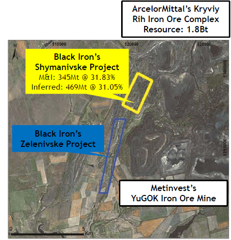 Black Iron äger 100 procent av järnmalmsfyndigheten Shymanivske, vilken bolaget håller på att utveckla. Även om prospekteringen är långt kommen och visar på höga halter av järnmalm så är den ännu inte avslutad, vilket gör att värdet på fyndigheten kan komma att bli betydligt högre än vad som indikerats.