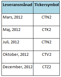 *2 avser årtalet, vilket betyder att tickern CTZ2 avser leverans av bomull i december 2012.