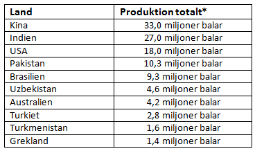 Global produktion av bomull 2009