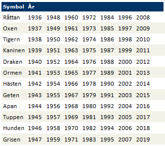 De kinesiska kalenderåren: