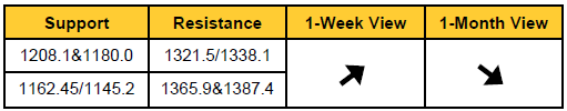 Interim low was made at 1180.04; is still expected to bounce back to the 1301.12/1321.50 zone.