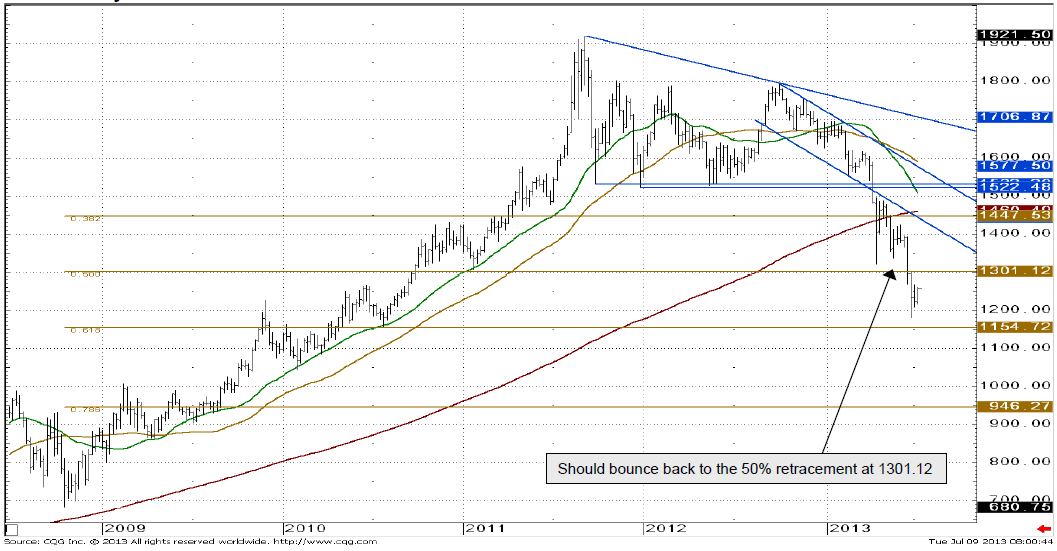 - Were the current July low at 1280.08 and the 1180.04 June low to give way, however, the 1162.45/1145.25 significant support zone would be targeted. It contains the January and March 2010 highs, July 2010 low and the 61.8% Fibonacci retracement of the 2008-11 up trend.