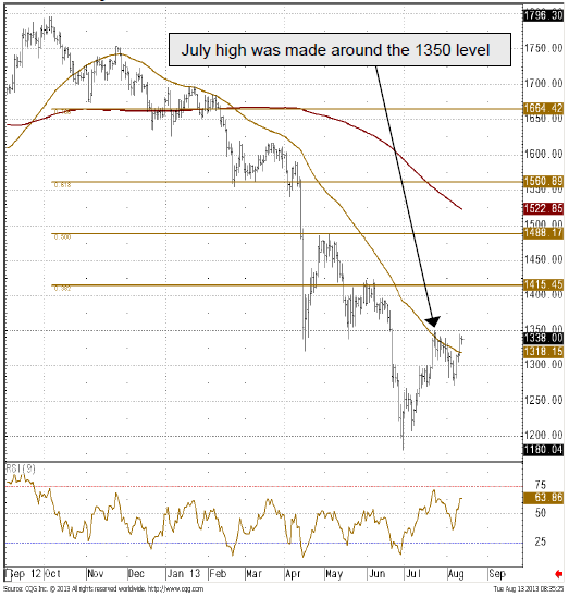 Is to overcome the 1350 region but is likely to run out of steam around the 1400 mark.