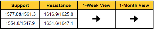 - While it remains above its seven month February low at 1554.83, though, further upside remains in store.
