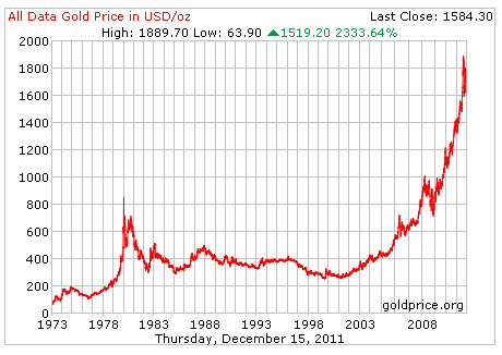 Efterfrågan på guld har aldrig varit så här stor sedan 1980. Som vanligt är det efterfrågan och utbudet som styr priset. Rapporten från Casey Research från december 2011 visar hur guldpriset har fluktuerat sedan 1970.