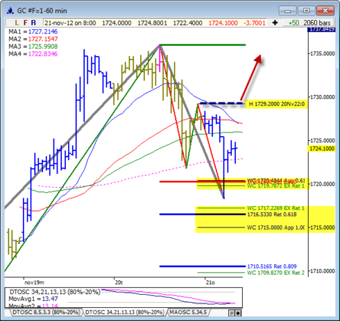 Kortsiktigt föreslås att om guld stiger över $1729.5 så kan vi mycket väl se guld vid $1771.