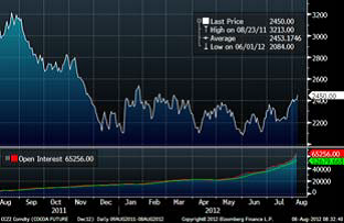 - Priset på kakao har sedan årets början stigit med nästan 16 %, vilket kan jämföras med ett prisfall på 18 % sedan augusti 2011. Vi tror att den positiva trenden kan komma att fortsätta.