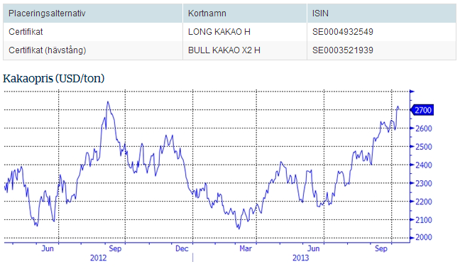 - I det långa loppet ser vi en ökad konsumtion av kakaoprodukter hos Asiens medelklass samt växande användningsområden av denna delikata råvara i konsumtionsländerna. Under året har de torra väderförhållandena vid Elfenbenskusten gett priset en skjuts och nu hotas årets skörd och produktionsminskning väntas.