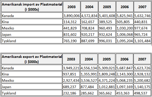 Följande tabeller visar import och export mellan Förenta staterna och dess största handelspartners. Valutakurser och skattepolitik, och tillgången på resurser påverkar handelns flöde.