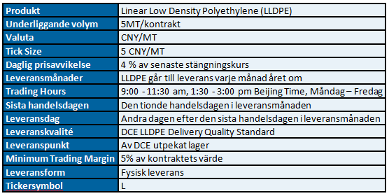 1.2 Standarden avser standardiserade terminskontrakt för LLDPE som levereras vid Dalian Commodity Exchange.