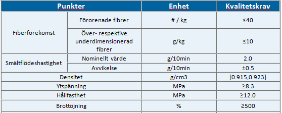 3.2 LLDPE kvalitetsindikatorer bör uppfylla de krav som anges i tabell 1.
