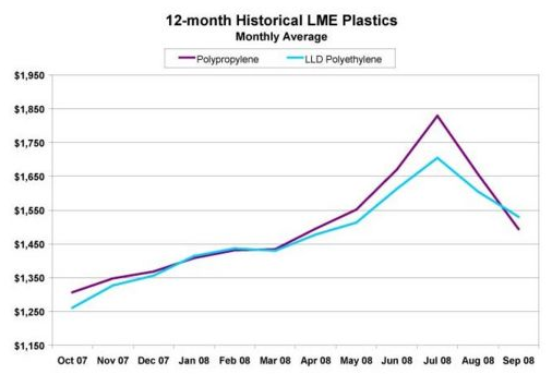 London Metal Exchange upphörde med handel i terminskontrakt på plast den 29 april 2011 som en följd av låga handelsvolymer. Redan den 31 juli 2007 öppnade emellertid Dalian Commodity Exchange handeln med terminskontrakt på LLDPE (Linear Low-Density Polyethylene) något som den 25 maj 2009 följdes av handel i terminskontrakt på PVC (Polyvinyl Chloride).