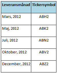 *2 avser årtalet, vilket betyder att tickern ABH2 avser leverans av korn i mars 2012.
