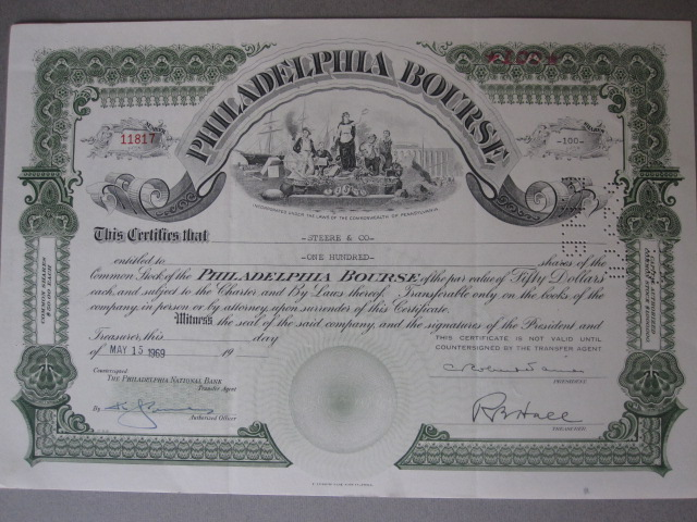 1890 kom George E. Bartol, en framgångsrik spannmåls- och råvaruhandlare tillbaka från en resa i Europa och inspirerad av de finansiella marknaderna på andra sidan Atlanten samlade han Philadephias mest inflytelserika köpmän och fick dem att tillsammans grunda stadens eget affärscentrum. Varje aktie såldes till en kurs om 1.000 USD och tillsammans med ett hypotekslån kunde The Philadelphia Bourse Corporation börja sin verksamhet under mottot “buy, sell, ship via Philadelphia”.