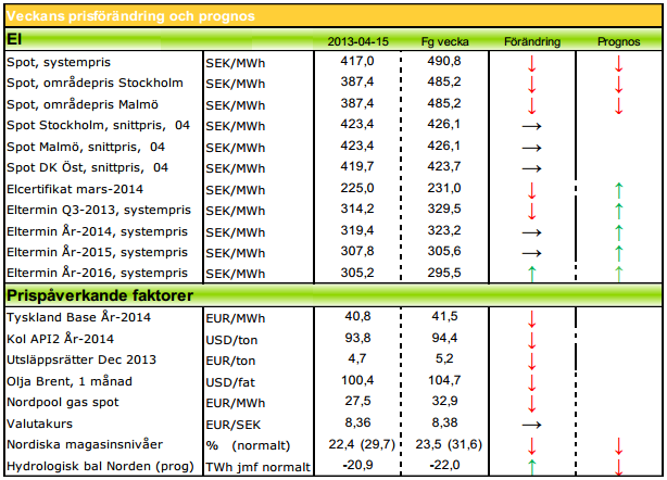 Fantastiskt vacker väder – om man tycker om sol och värme! Förändrade prognoser säger varmt och blött. Terminerna sjunker i pris, spoten likaså. Naturgaspriserna på Nord Pool gasbörs har faktiskt normaliserat sig men kolet något uppåt.