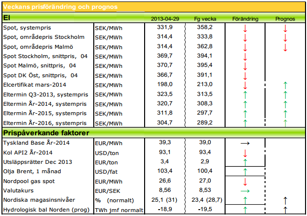 Modity om elpriset vecka 18 2013