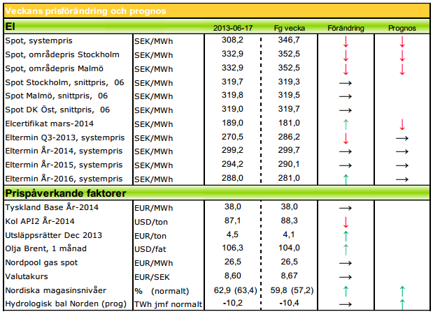 Modity om elpriset vecka 25 2013