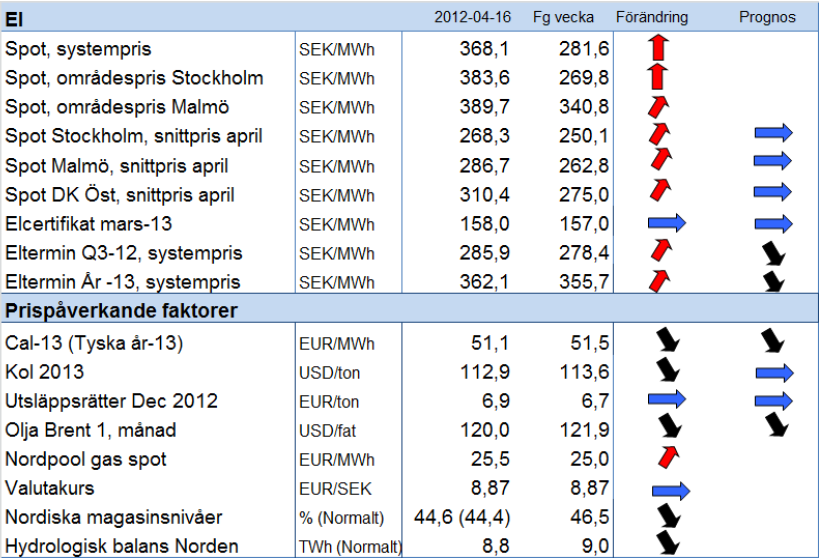 Modity om energimarknaden vecka 16 2012