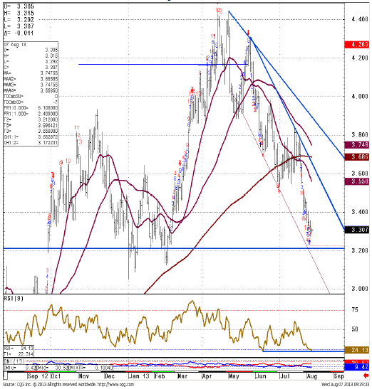 - The 3.4070 support was considered to be the last defense for the 3.1250 February low and the 3.05 low charted in January. These are the next downside targets. Given that the daily RSI is already low and we have a TD perfected set up on the daily, we should see these supports hold the initial test.