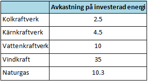 Energiavkastning per tillgångsslag
