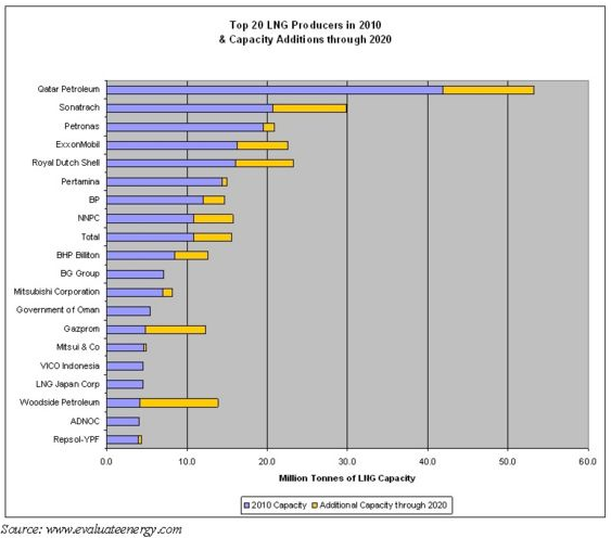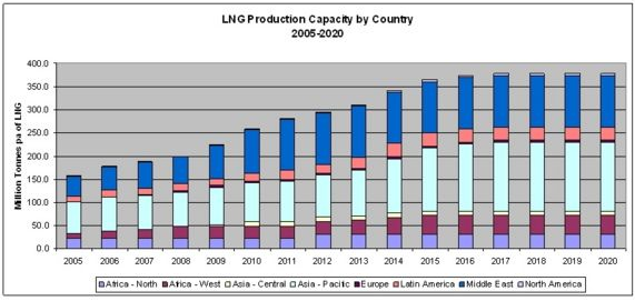 Under 2009 och 2010 fanns det tillräckligt med flytande naturgas-anläggningar för att kunna bemöta 30 procent av världens efterfrågan.