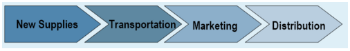 Värdekedjan för naturgas påminner om den för andra fossila bränslen. Den omfattar prospektering och produktion, bearbetning, transport, ytterligare bearbetning, marknadsföring och distribution, och slutligen leverans till slutanvändarna. Historiskt sett har aktörerna på naturgasmarknaden tittat en hel del på elbranschen – ett naturligt monopol på grund av de höga kapitalkostnaderna för naturgasledningar och svårigheter att lagra naturgas men också starkt reglerade i både grossist- och slutkundsledet. Men till skillnad från elbranschen, har avregleringen varit bra för naturgasindustrin, och har uppmuntrat till utvecklandet av innovationer och en förbättrad leveranssäkerhet.