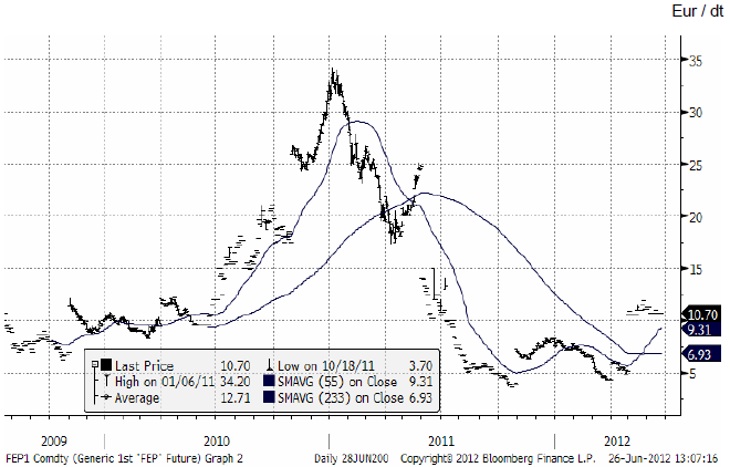 Argus har ett CIF Northwest Europe (ARA + UK) och ett FOB. FOB är mer relevant för säljare runt Östersjön.