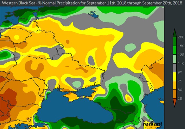Nederbörden har ökat i centrala Ukraina under den senaste veckan, vilket har bidragit till att öka fuktigheten något för vintervetet. I de nordöstra och sydligaste delarna av Ukraina, den västra delen av västra Volga-dalen, och centrala och södra Ryssland, råder emellertid torka. Temperaturerna har också varit ganska varma i dessa områden, vilket accelererar torkan.