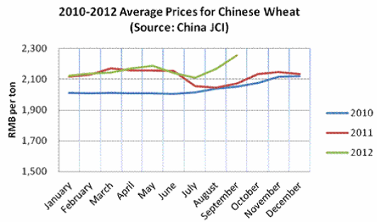 Även om officiella kinesiska regeringskällor uppskattar ännu en ökning av den kinesiska vete produktionen på årsbasis tror USDA att denna prognos är alltför hög, ca 10 mt, då de inhemska vete priserna har fortsatt att stiga, framförallt om det förväntas att fodertillverkare istället kommer att använda mer av majs än vete i sin produktion av kostnadsskäl.