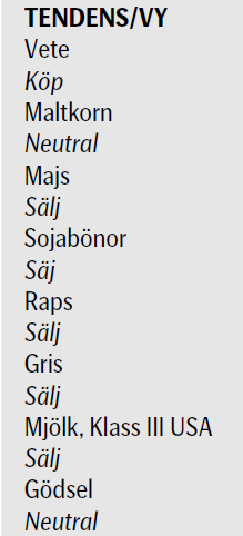 WASDE-rapporten tolkades av marknaden som negativ för vete, majs och sojabönor eftersom USDA:s estimat på utgående lager höjdes i rapporten som publicerades 14:30 i fredags. SEB fortsätter, att som första bank i världen, erbjuda sina kunder att prissäkra ett börsbaserat mjölkpris i kronor per kilo, i poster om 10,000 kg.