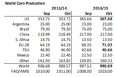 FAO, som rapporterade i torsdags, dagen innan USDA:s WASDE-rapport, höjde det globala produktionsestimatet för 2014/15 till rekordhöga 719 mt. Detta beror på att FAO höjer produktionsestimaten för Kina, Indien, Ryssland och Ukraina.