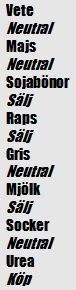 Utgående lager justerades upp pga den högre produktionen, från 183.73 mt till 183.81 mt. I termer av antal dagars konsumtion blev det en förändring från 78.34 till 78.03, eftersom konsumtionen faktiskt stiger. Priset på vete föll direkt efter rapporten och det berodde nog inte på att lager i förhållande till konsumtionstakt sjönk, utan på att rapporten gav ett ögonblick av klarhet när det mesta är osäkert.