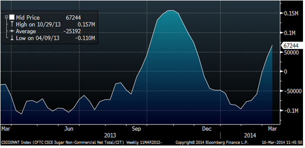 I veckan som slutade den 4 mars hade enligt CFTC kategorin ”Non-Commercials”, dvs hedgfonder och spekulanter, trefaldigat sin köpta position i terminer.