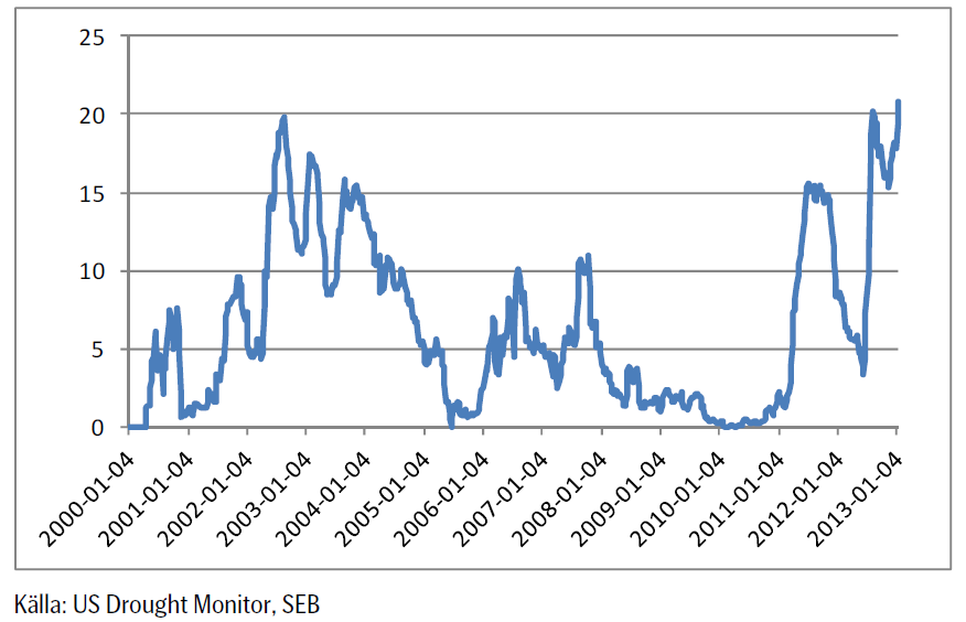 Fundamentalt pekar nyhetsflödet dock i motsatt riktning. Nyheterna, särskilt NOAA:s långtidsprognos om varmt och torrt väder i centrala USA (corn belt), gör att oron ökat i veckan.