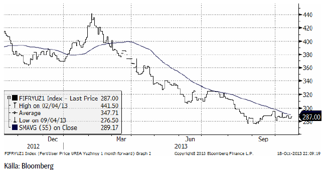 Priset på kväve / urea var stabilt i veckan som gick med endast små kursförändringar.
