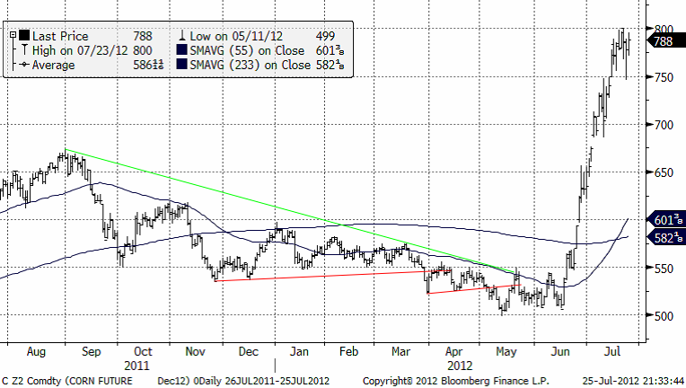 Priset på decembermajs har som bekant rusat upp till 800 cent. När man pratar med folk i marknaden råder total samstämmighet att vi ännu inte sett toppnoteringen på majs. Sådan samstämmighet brukar i och för sig innebära att man faktiskt har sett toppnoteringen.