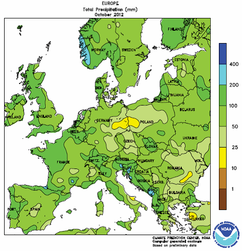 Under oktober månad har ihållande regn över Storbritannien och norra Frankrike försenat skörden och hämmat sådden av höstgrödor. Enligt FranceAgrimer var sådden av vete (mjukt) avklarad till 88% per den 12 nov, att jämföra med 98% vid denna tid året innan. Även Spanien och Italien har fått mycket nederbörd, som dels har varit behövligt för att återställa markfuktigheten, men som även har orsakat stora översvämningar – framförallt i norra Italien. Även Sverige har påverkats av regnet, med en minskad höstsådd i framförallt Halland och Mellansverige.