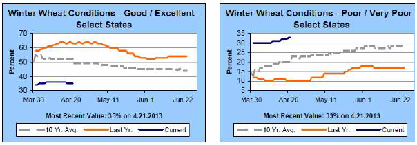 Måndagens crop condition-rapport ser vi i sammanfattning nedan.