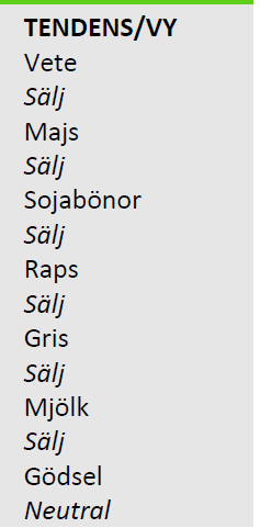 Vi går över till säljrekommendation på alla grödor.