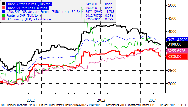 Vi ser samma svaga prisutveckling som på Eurex, även på CME i Chicago och i Fonterras notering.