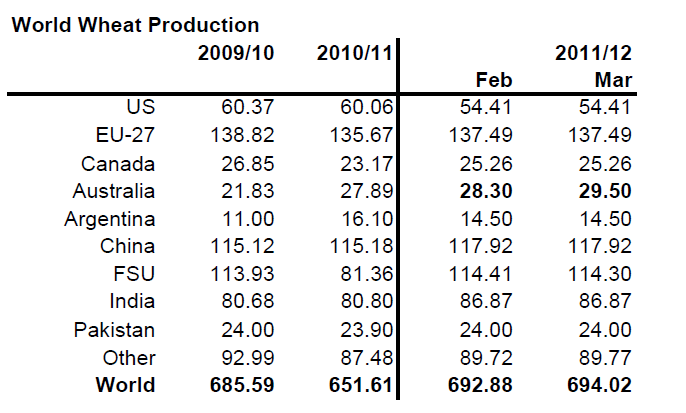 World Wheat Production - 2009, 2010, 2011, 2012