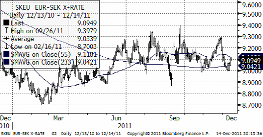 EURSEK har märkligt nog stigit upp från 9 kr. Kanske tycker marknaden att det finns anledning att tveka även om den svenska kronans värde.