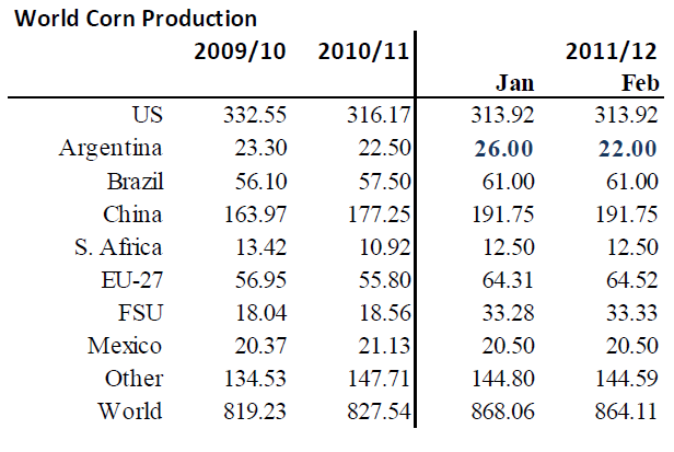 NOAA rapporterar i sin senaste synopsis att La Niña torde övergå till ”neutrala” ENSO-förållanden under perioden mars till maj 2012. Detta skulle betyda att hotet mot torka för norra halvklotets skörd kraftigt har minskat. Detta är klart negativ information för marknaderna för majs, vete, sojabönor och raps.