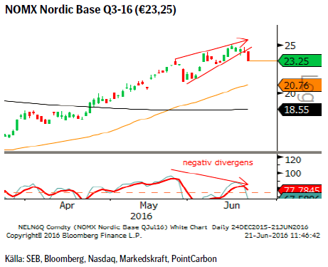 - Elpriset (Kv3 2016) bör falla tillbaka efter att hydrobalansen nu förbättrats.