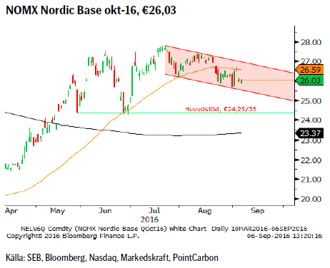 - Elpriset (okt-16) har mer eller mindre legat stilla sedan mitten av juni.