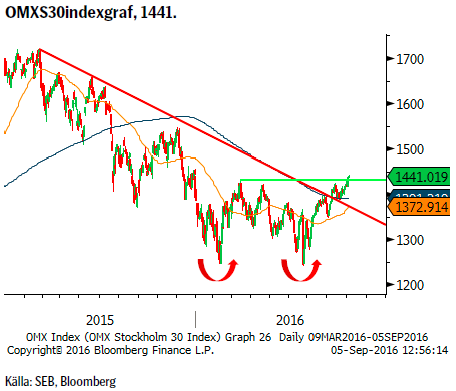 - OMXS30 har brutit upp över topplinjen från 2015 års topp.
