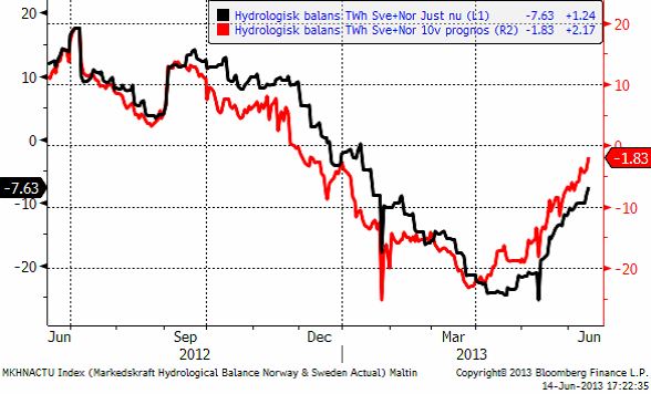 Hydrologisk balans har fortsatt att stiga, som vi ser i nedanstående diagram.